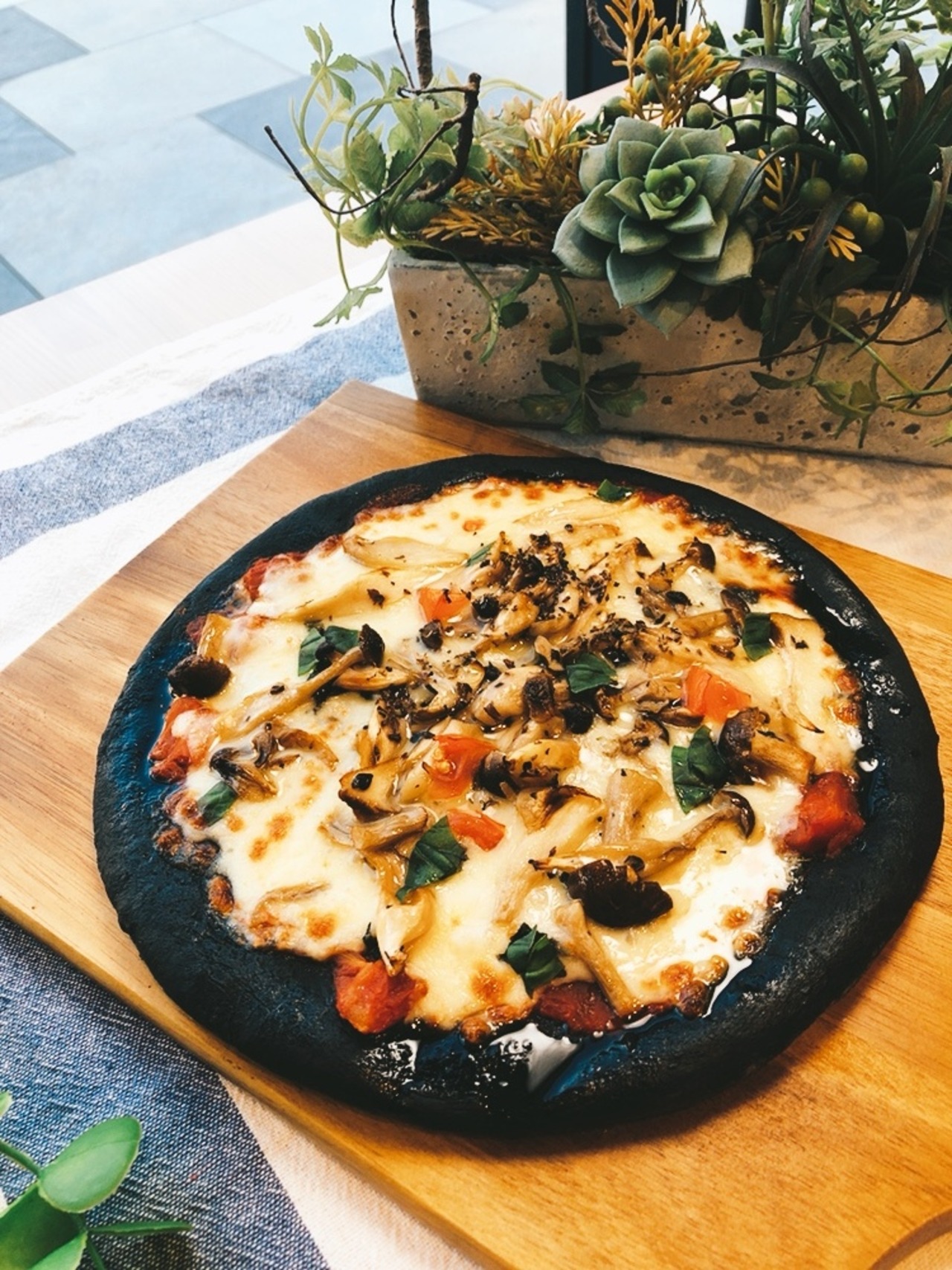 是非この竹炭ピザで特別な食事体験をお楽しみください。ただし、自然食材を使用しているため、保存期間が短いことにご注意ください。